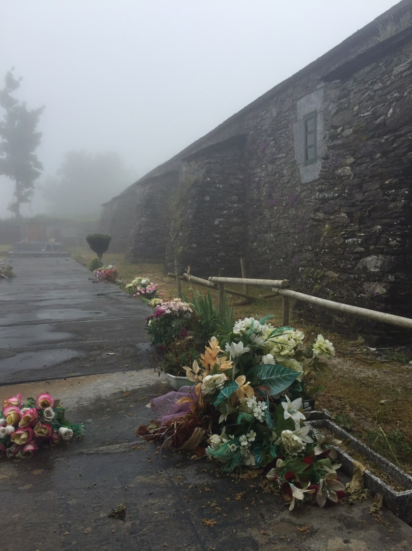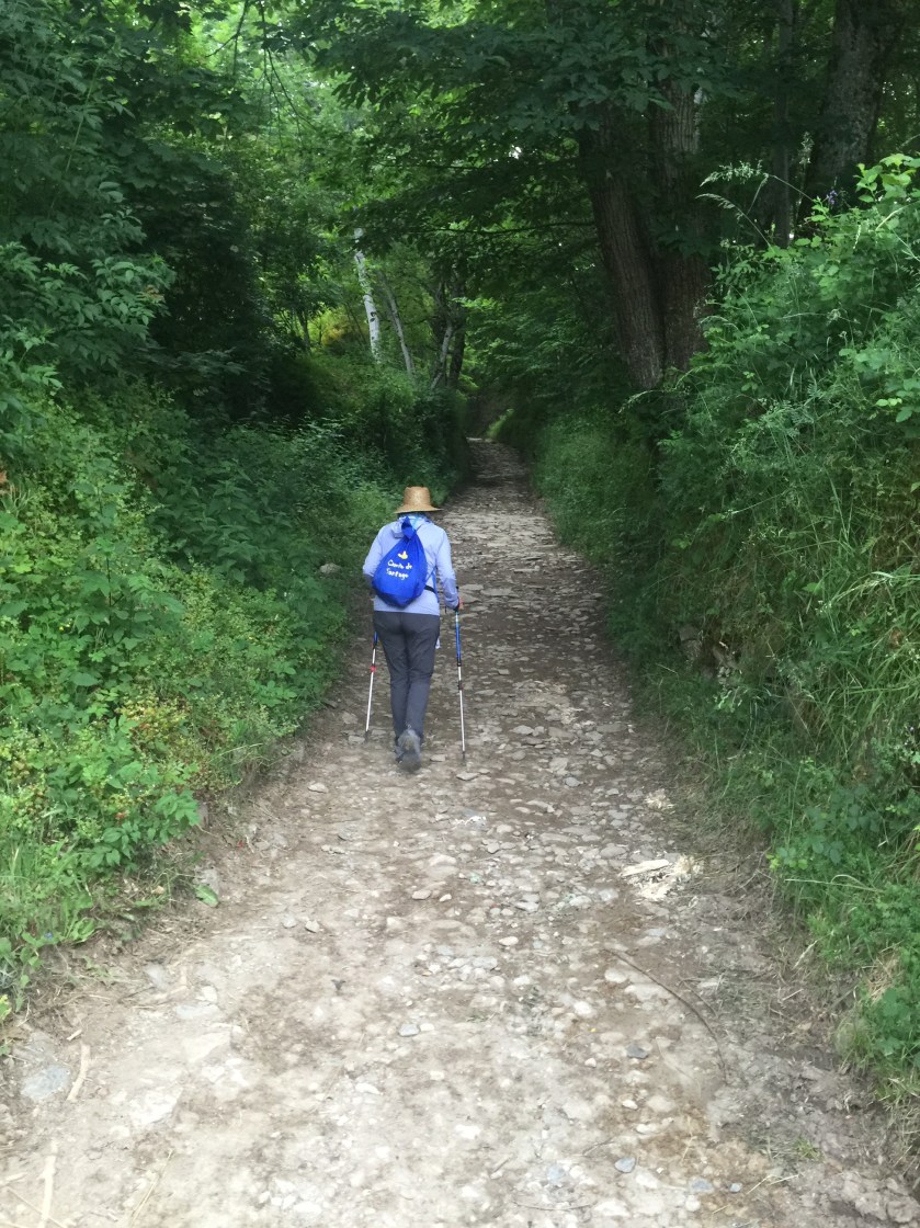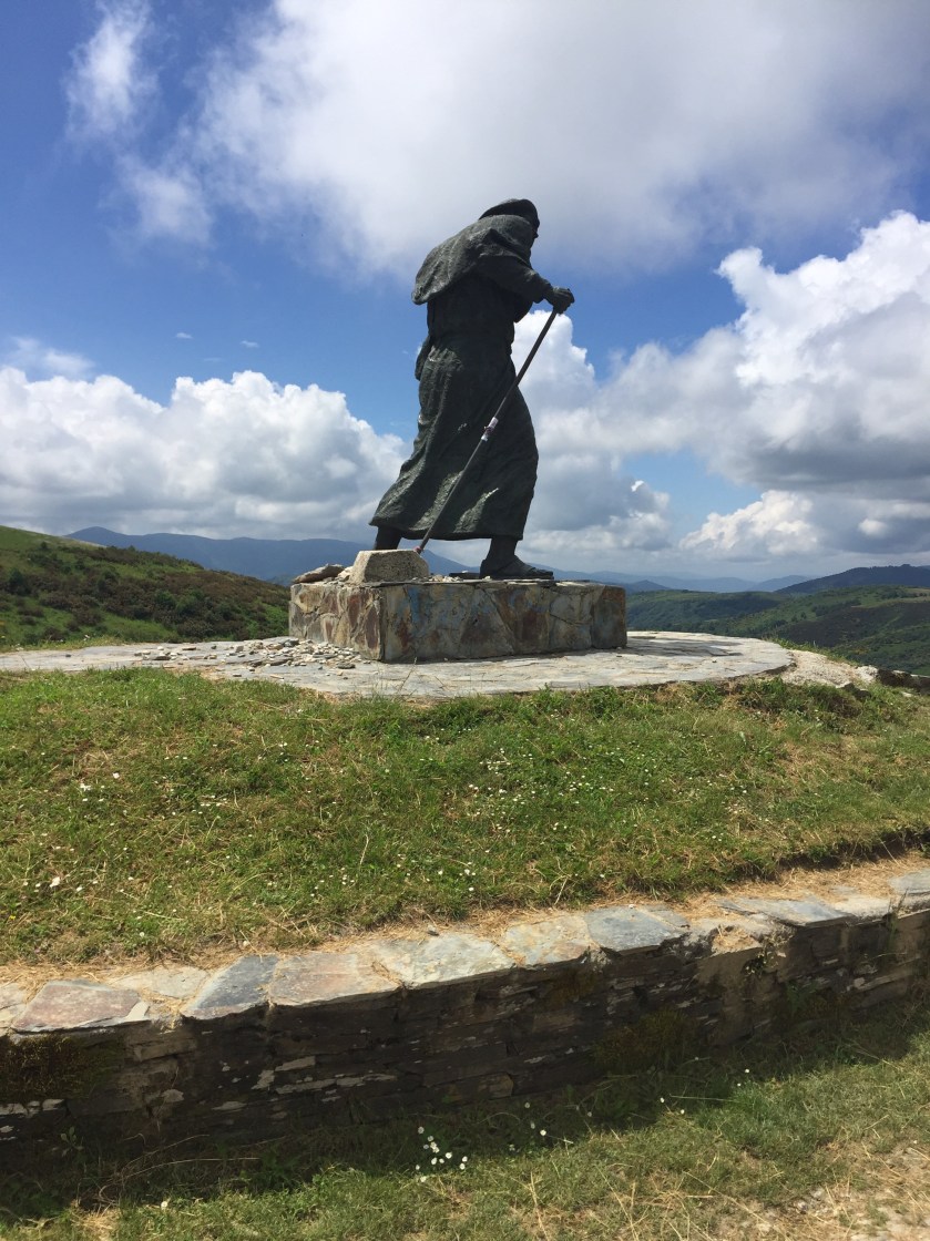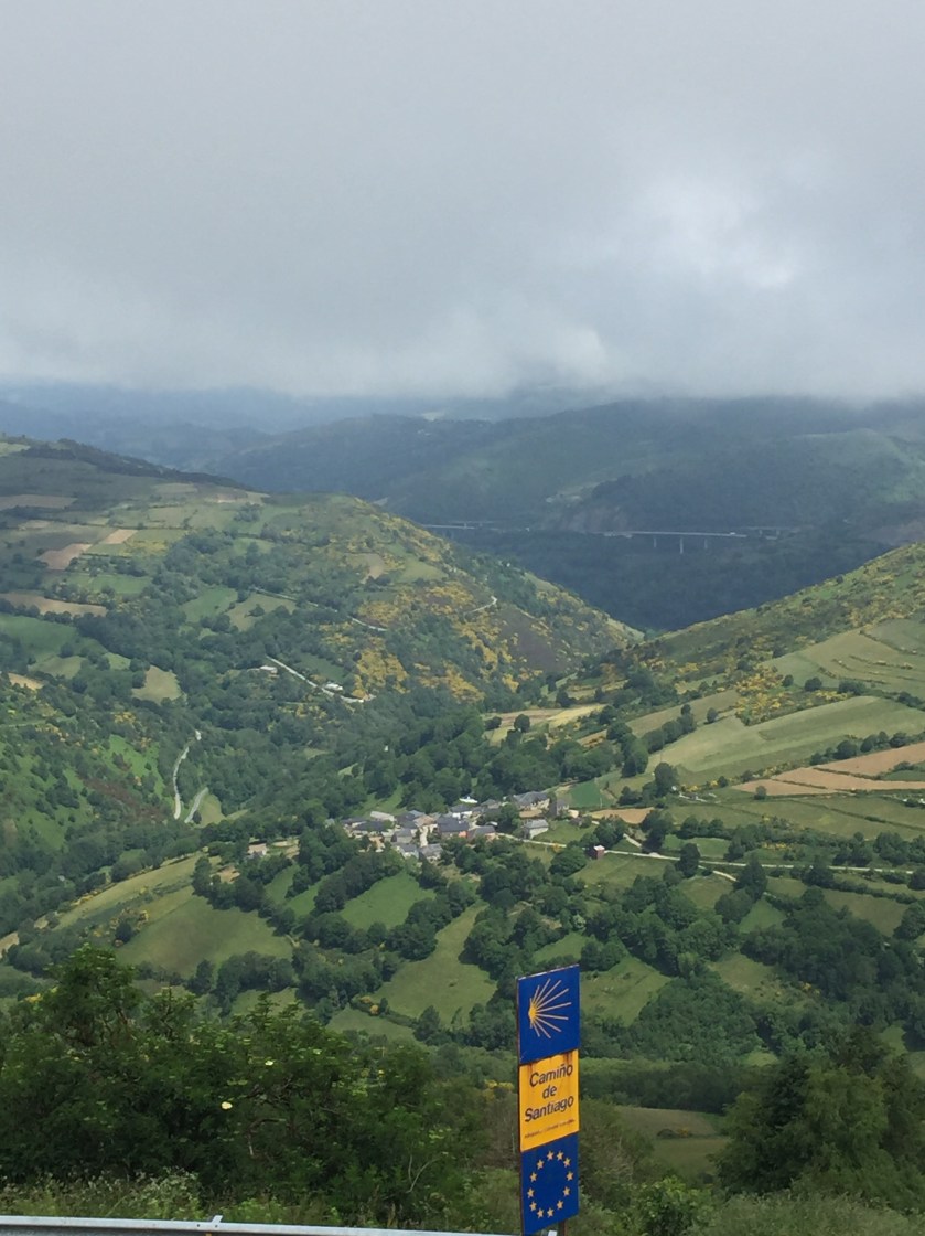 Today we continued our steep climb to the village of O’Cebreiro, a mountaintop top old village hosting one of the oldest churches on the Camino dating back to the 9th century, we walked the steep path in a cool morning mist, walking in the clouds that capped the tops of the mountain. We are now in the district of Galicia, with the Celtic influence, the food and the language here is different than other parts of Spain. The wine is richer and more bold, the cattle , sheep and pigs are the mainstay here, but later as we near Santiago in Galicia we will see more and more sea food offered.